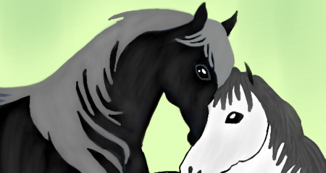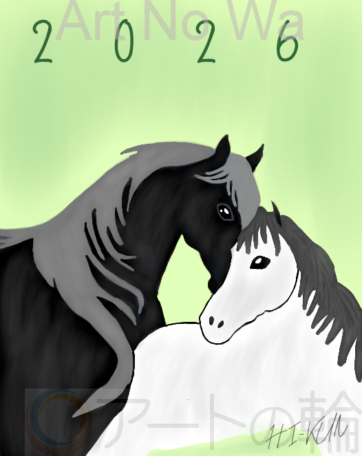 黒馬は神聖な存在、強い力、白馬は神聖な乗り物、邪気払い、立身出世の象徴などの神話があります。新しい年が世界中の人たちにとって平和で穏やかに明るい時間であるように願いを込めて描きました