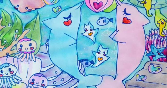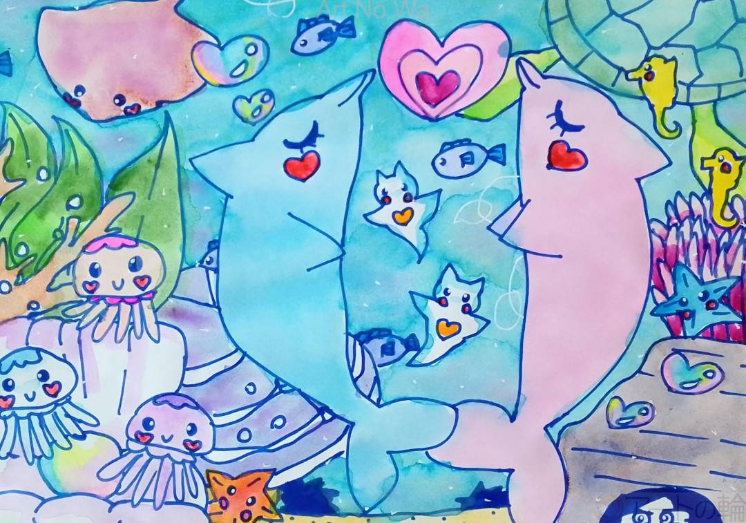 沢山のそれぞれの海の生き物が愛を持ちながら生きている様子を描いてみました。