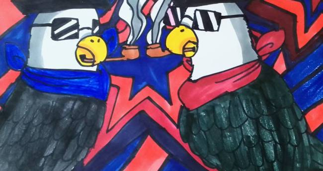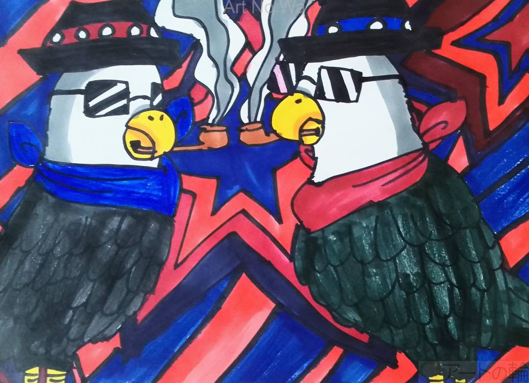 サングラスとハットとタバコでキメているハクトウワシをワイルドに描いてみました。