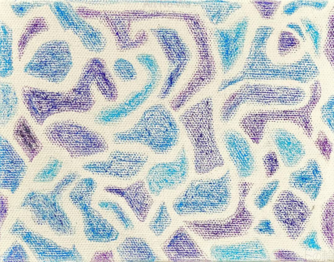 キャンバス上に液体をたらし、好きな方向に傾けて水のゆくえの道筋をつくり、その部分を余白として残して水が通らなかった部分を塗りつぶしました。ある種の実験だったため、わくわくしながら制作することができました。