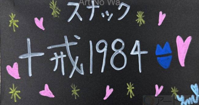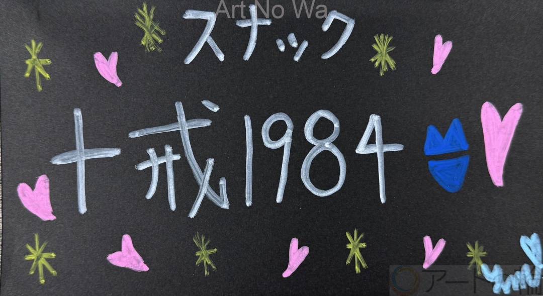 中森明菜さんの名曲からインスピレーションを受けた作品です。かくうのスナックのかんばんを描きました。