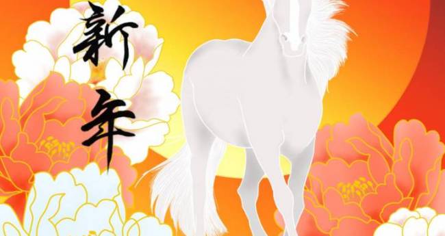 美しい馬と日本の花と太陽で、優雅な感じにしました
