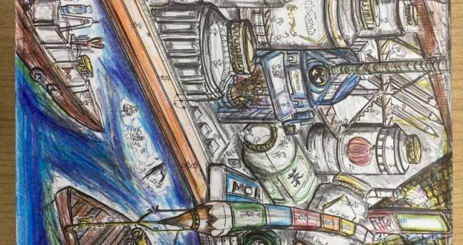 人が文房具たちの中に入って過ごしていることを思いつき描いてみました。