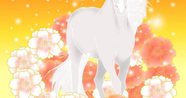 白馬と桜で可愛く表現しました