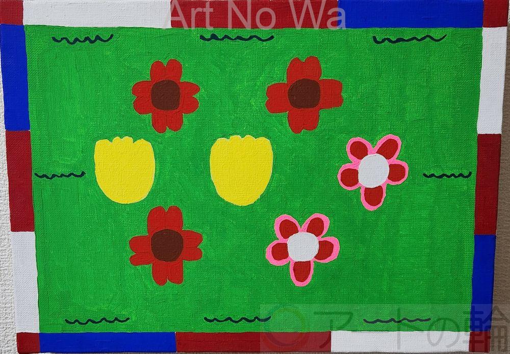 ある晴れた日の散歩道、道端には色とりどりのお花が咲いていました。その美しさをイメージして描きました。