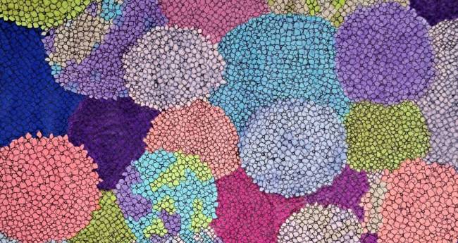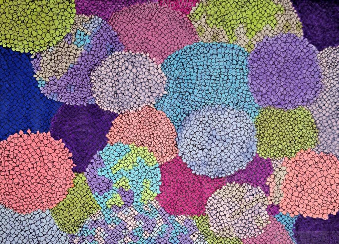 あじさいの花びらを細かく、画用紙に敷き詰めるように描きました。