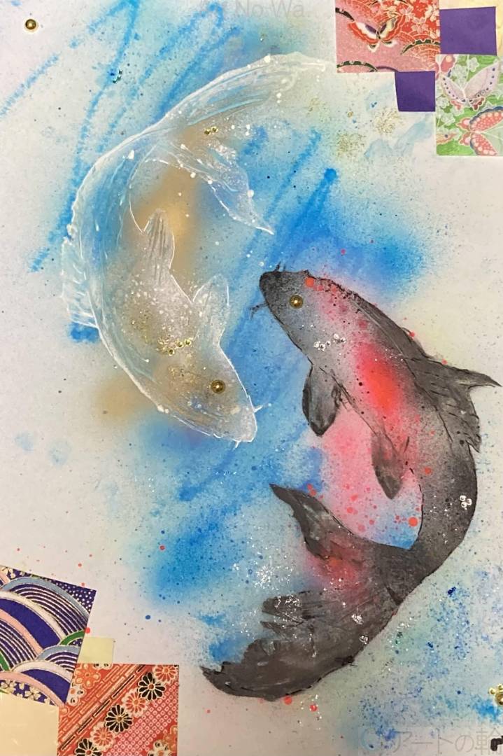白と黒の鯉たちは、太極の流れの中で光と影、陰と陽を超えて調和しています。 この作品は、対極の存在が融合しながら生まれる力とバランスを表現しました。 鯉が泳ぐ姿は、森羅万象—すべての存在や現象—を包み込み、変化し続ける無限の可能性を象徴しています。 どんな環境でも光り輝く鯉たちの姿を通じて、多様な違いを認め合い、共に未来を創る力を伝えたいと思います。