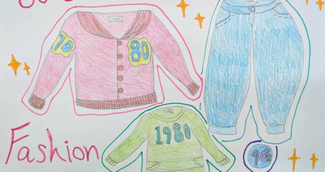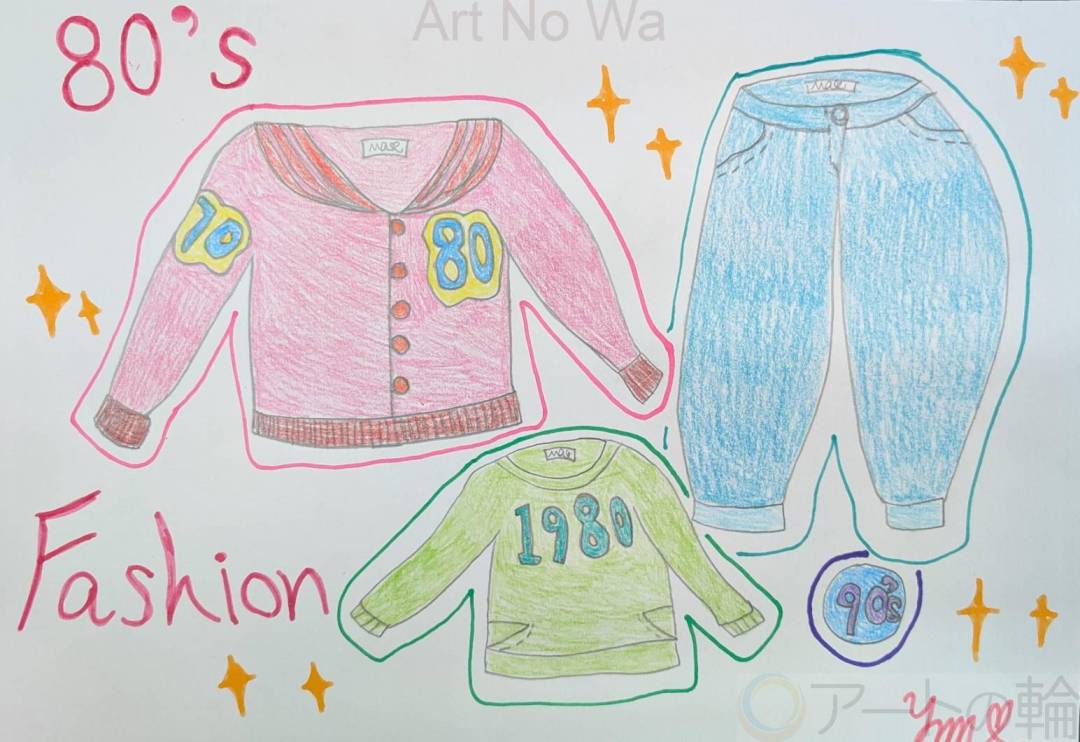 1980年代のバックトゥザフューチャーに登場しそうなファッションのデザイン画を描きました。