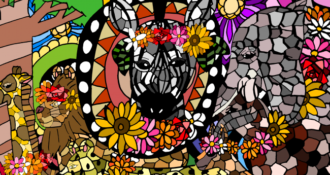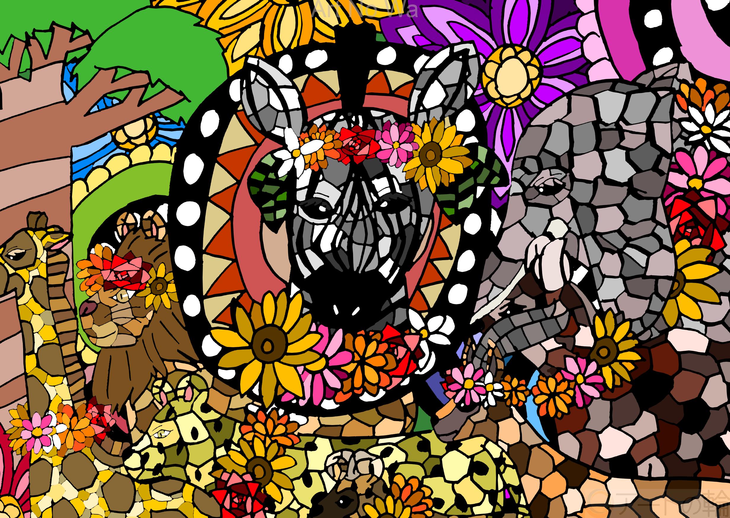 サバンナにいる動物達を沢山ステンドグラス風に描いてみました!
