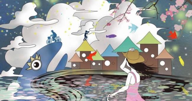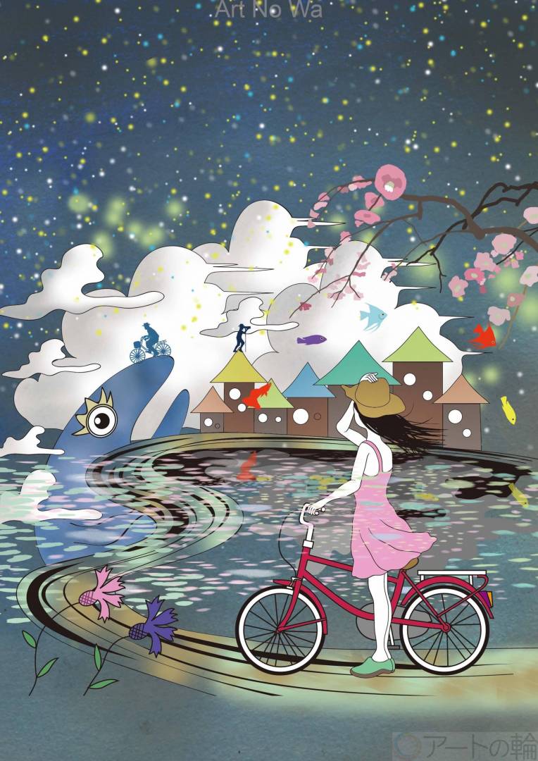 非現実,屋外,レトロ,青,人物,女性,かわいい,わくわく