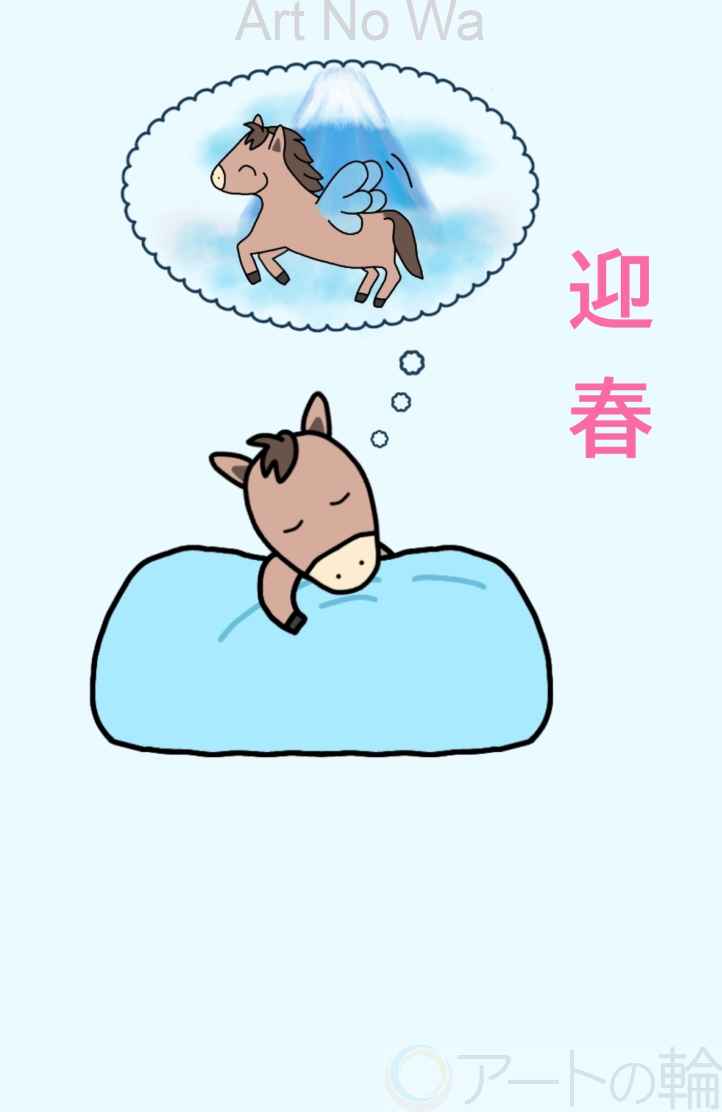 正夢をみて富士さんに行けたらと思ううまを描きました。
