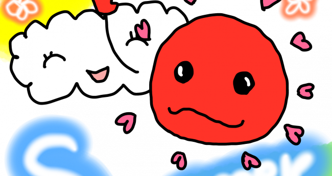 現実,屋外,自然,空,夏,赤,オレンジ,黄色,緑,水色,白,想像上の生き物,風景,明るい,たのしい,かわいい,わくわく