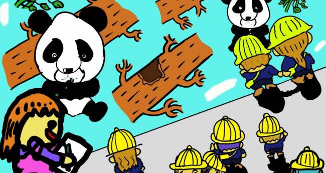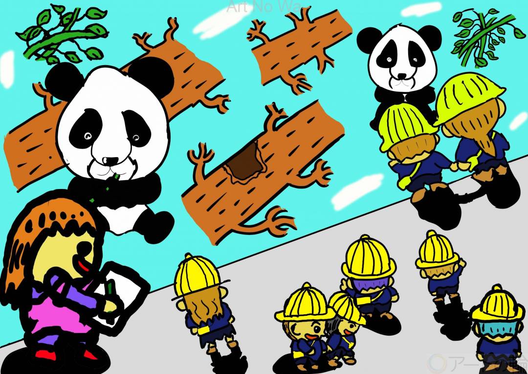 パンダの有名な動物園に行ったとき、可愛らしい園児が列を作って並んでいました。その時にパンダと園児を一緒に書き上げたらより可愛くなるのではないかとこのイラストを描きました