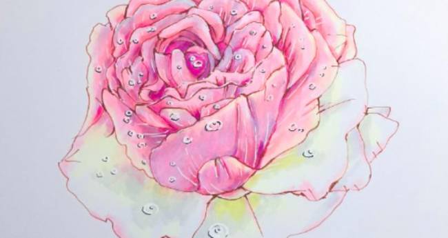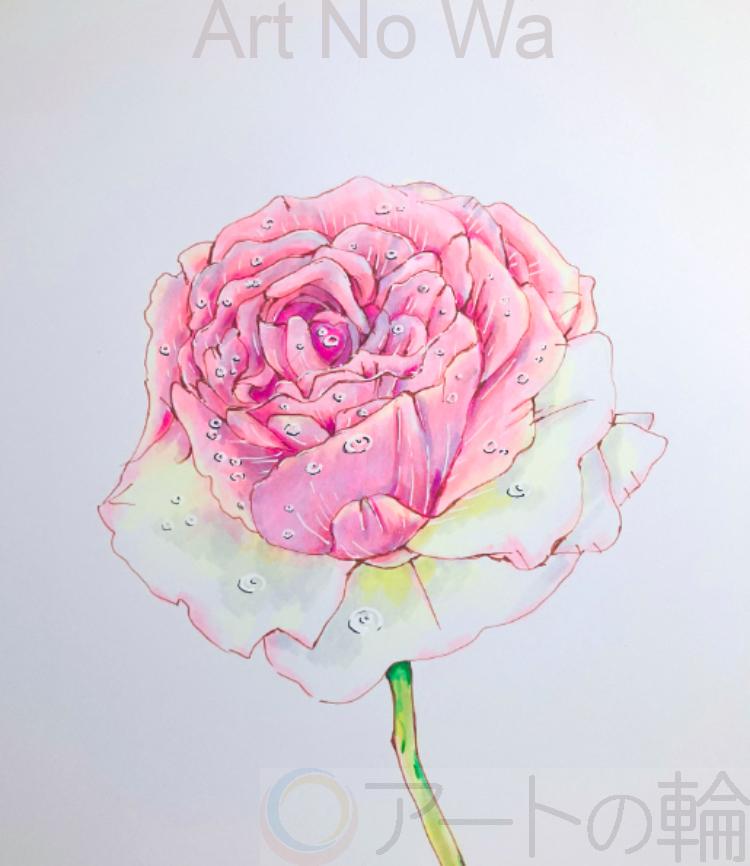 庭に咲いたバラに雨が振り雨粒が綺麗だったので書きました