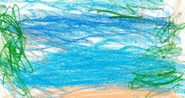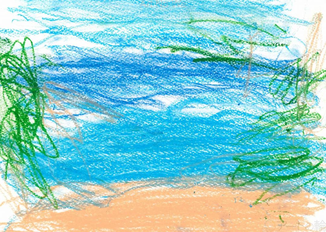 大好きな奄美大島の海の絵を描いてみました。海の水色と青のグラデーションがとてもお気に入りのところです。