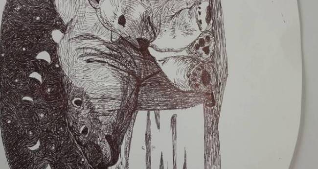 ボールペン1本で、緻密な世界を、表現しようと、白くまを、モチーフに、描いてみました。