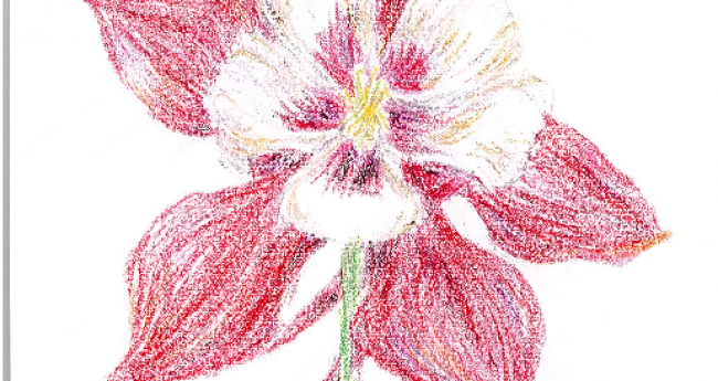 クレヨンのみで風景画、静物画、名画模写などを描いています。 作品によっては鉛筆を使用しています。