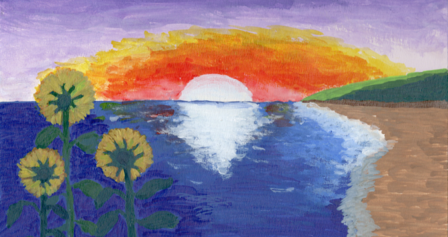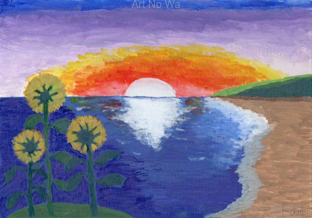 朝日がのぼる海を想像して描いてみました。
