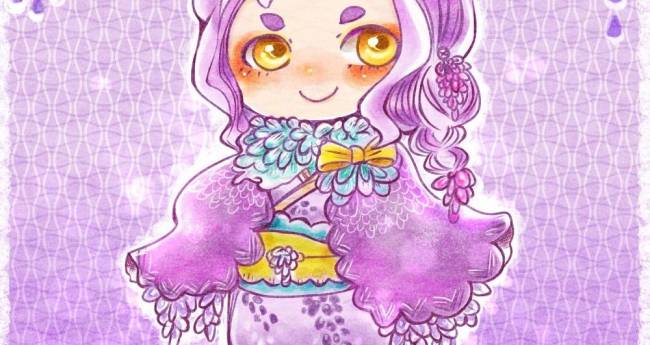 春,紫,人物,女性,明るい,たのしい,2D