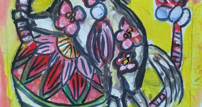 非現実,赤,黄色,緑,白,黒,動物,明るい,たのしい,わくわく