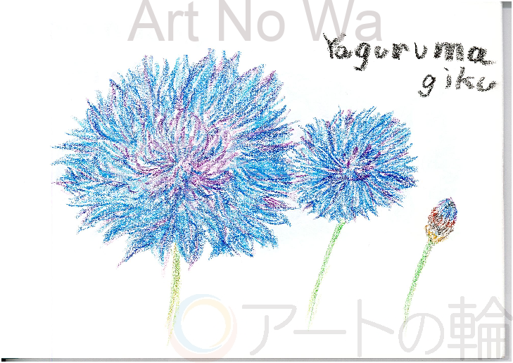 クレヨンのみで風景画、静物画、名画模写などを描いています。 作品によっては鉛筆を使用しています。