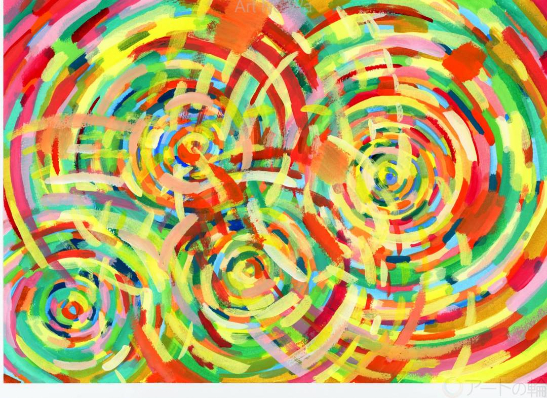 私は生きている。生きている証の鼓動は大きな音となって周りの家族や友人に聞こえる。私の鼓動は広がっていく。どくどくと、どんどんとひろがっていく。無限に広がってく。アクリル絵の具