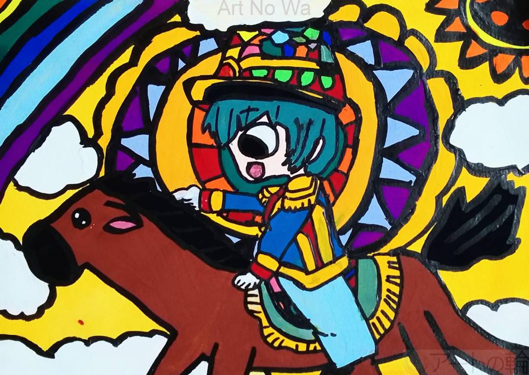 空を乗っている馬と一緒に駆け抜けている様子を描いてみました。