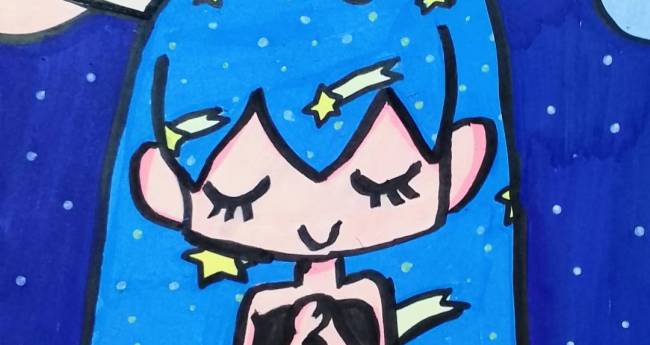 流れ星に願いを込めている女の子を描いてみました。