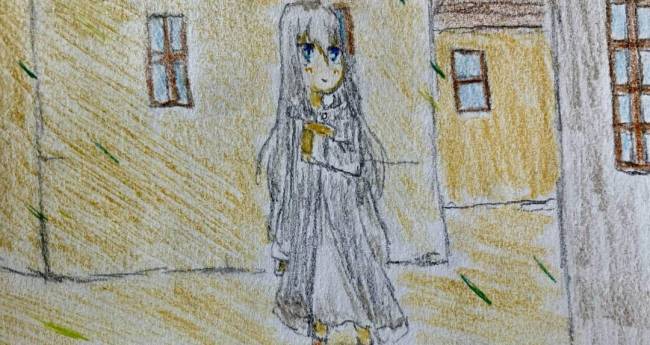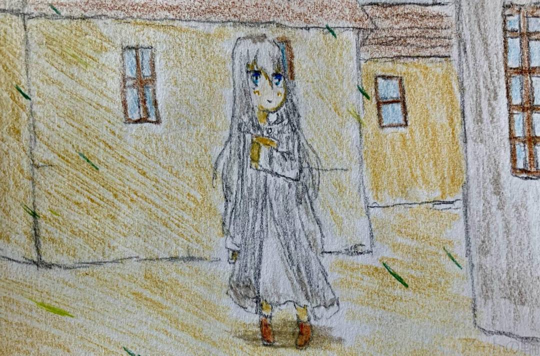 少女は小さな町の町角に吹き抜ける風を感じている。ノスタルジックな雰囲気を感じて貰えたら嬉しいです。