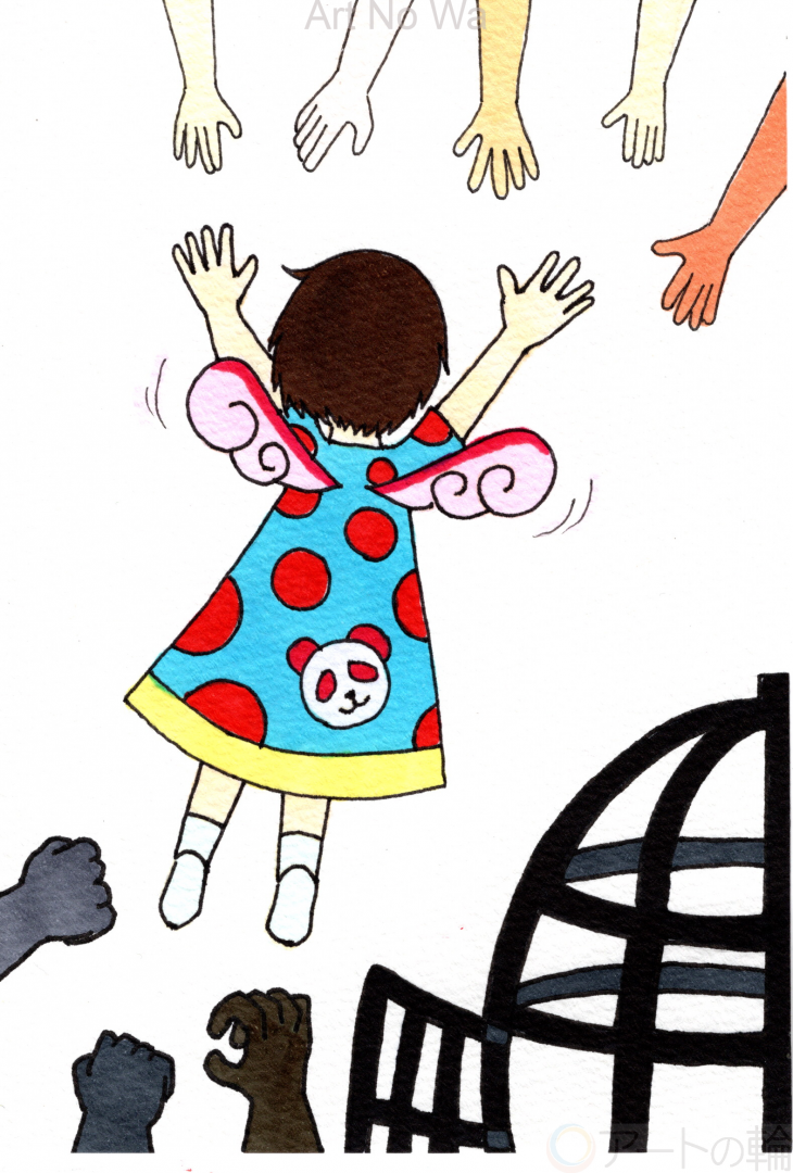 良い場所はいつでも助けれるようにやさしい手をのばし、自力でとべるのをまってくれている場所。いるべきでない居場所は、つごうのよい時のみつかまえにきて、つごうの悪い情報をかくし、せまいオリの世界に閉じこめる場所。つばさをもってはばたける場所こそが成長できる自分のいるべき居場所。