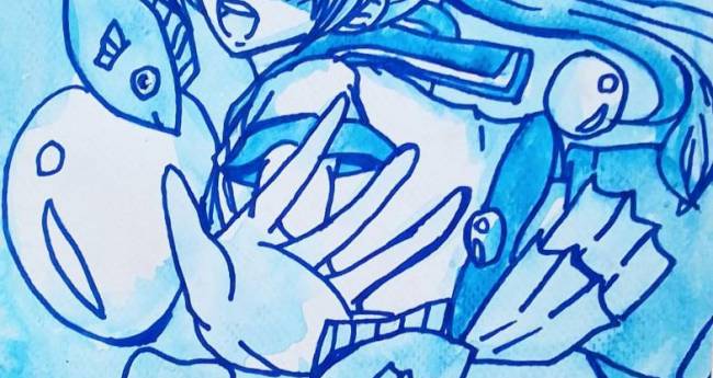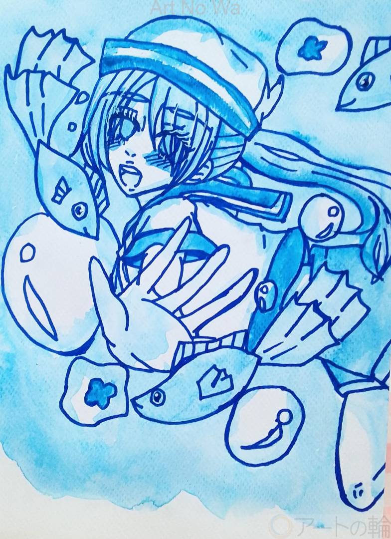 魚と泳ぎながら戯れている女の子を描いてみました。