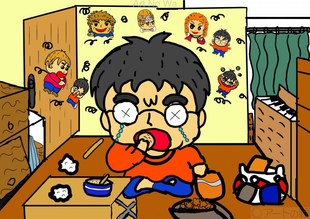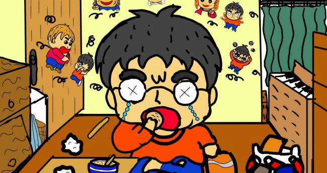 実はこのイラストを書いているときはかなり辛かったです。なぜなら弱い自分、過去の辛かった経験に向き合わなければならなかったからです。ですが、そんな負の自分も受容して転んでもただでは起きないという気持ちでかきました。学生の頃に嘲笑されていた嫌な思い出、嫌なことがかさなるとお菓子などをやけ食いしてしまう自分、怒鳴られた過去、怒ってしまう短気な自分、明らかに態度を変えられている自分、嫌なことばかりでした。でもこの辛さもイラストに吐き出してしまえ。このような気持ちが詰まった作品です
