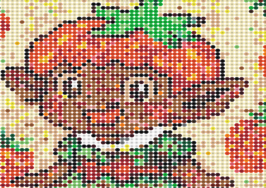 非現実,レトロ,春,赤,オレンジ,黄色,緑,想像上の生き物,明るい,たのしい,かわいい,わくわく,どきどき,2D