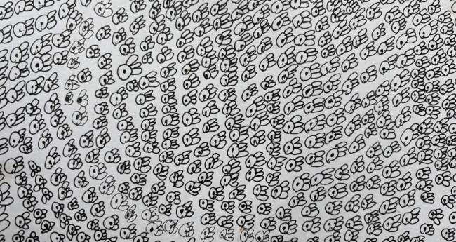 小魚の群れを描きたかったです。こちゃ絵は自由です。こちゃ絵は平和です。こちゃ絵は絵の原点です。アール・ブリュットかなと思いながら描きました。これからもこちゃ絵描きたいです。時間日数かかりましたが。がんばりました。ようやく完成しました。よろしくお願いします。また描きたいです。