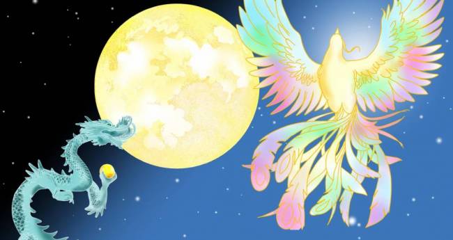 神聖な鳥 鳳凰と月