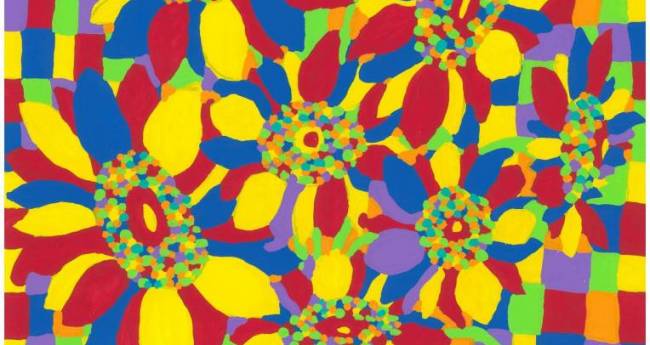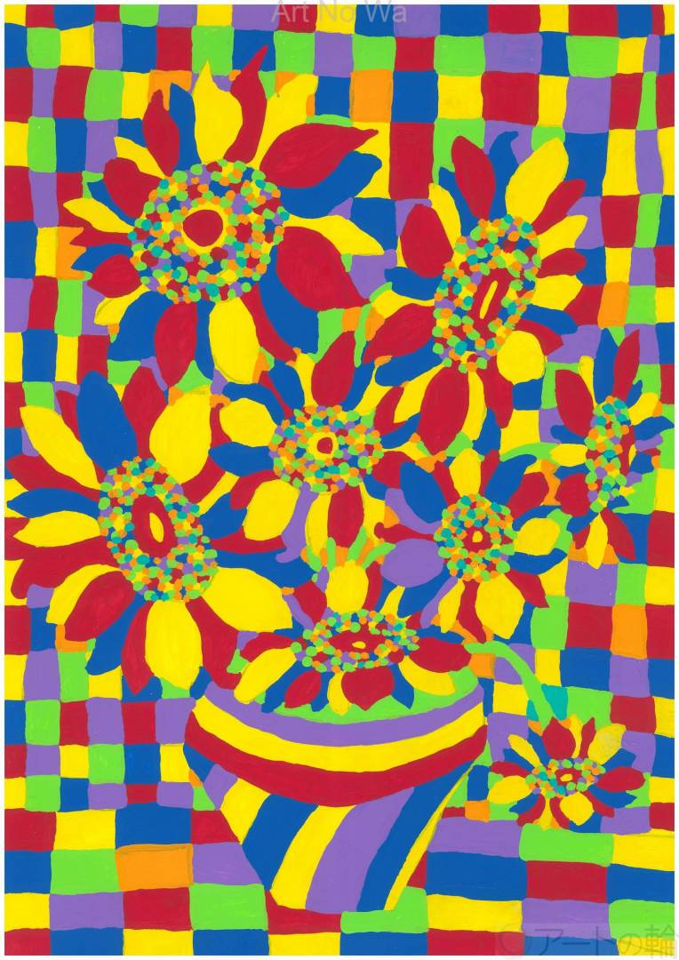 心の向日葵を、自由に楽しく、私が感じた色彩で一生懸命表現しました。