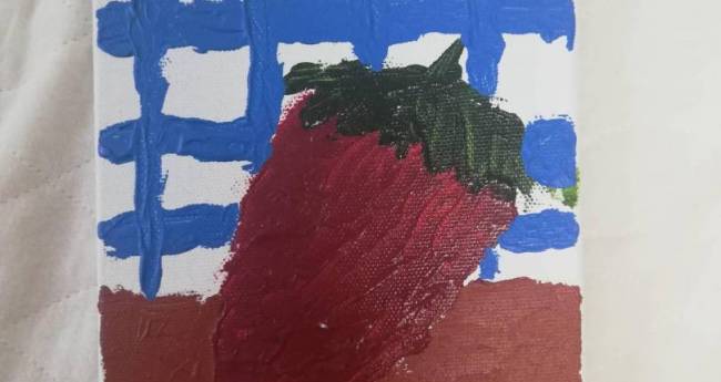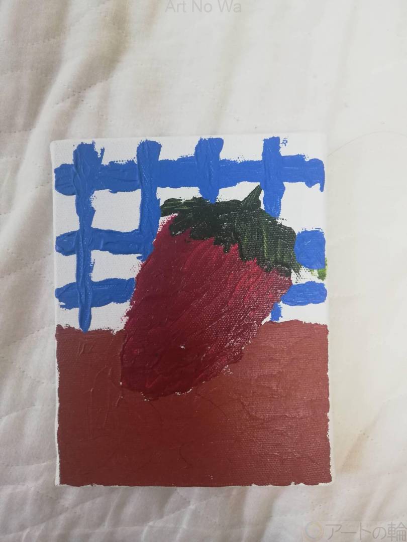 いちごをアクリル絵の具で描きました。背景は青で。