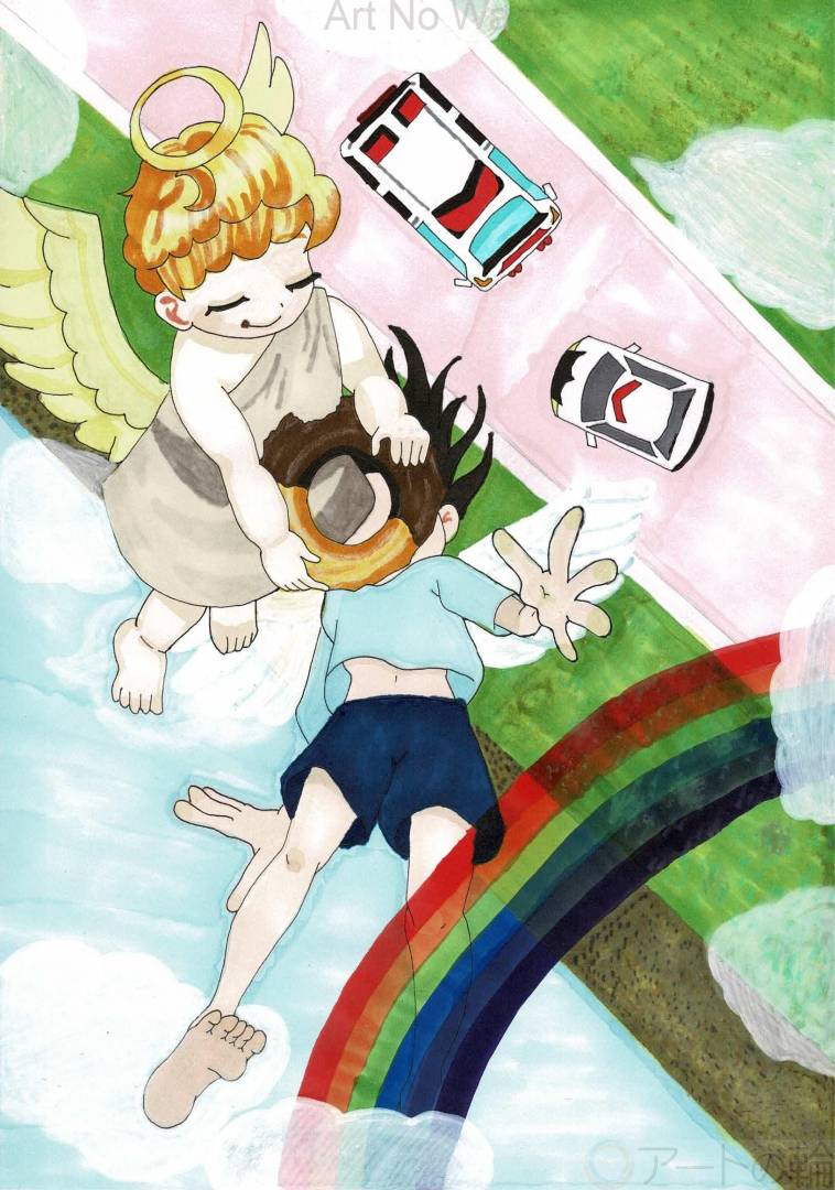 天使「だって、君に天界はまだ早すぎるもの」 虹が6色になってしまったのが悔やまれます…黄色入れ忘れました