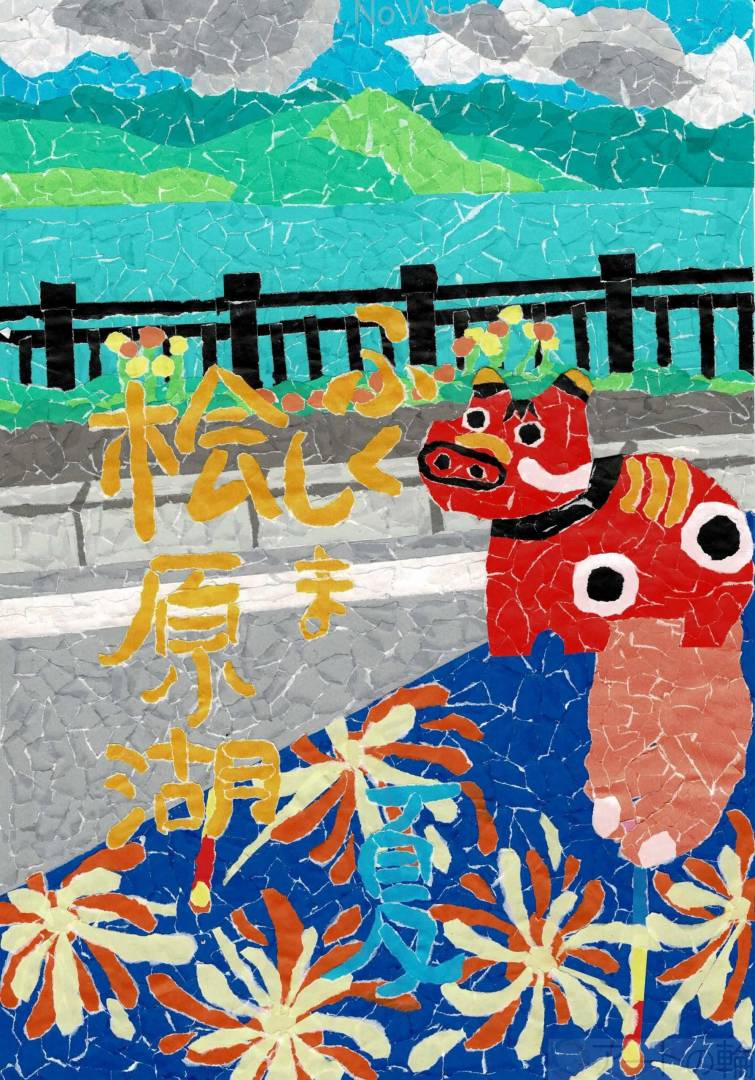 2024年お盆で帰省した友人とのお出かけの思い出をちぎり絵にしました