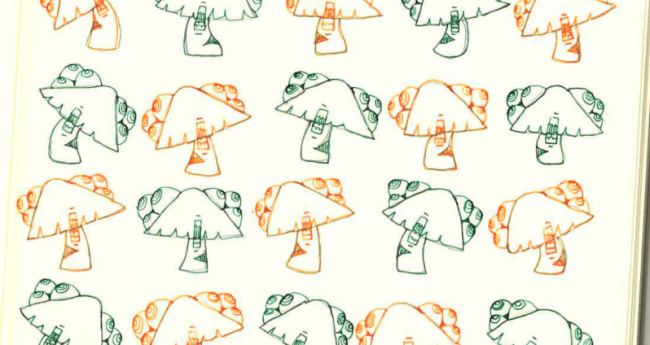 非現実,山,植物,想像上の生き物,明るい,たのしい,かわいい,わくわく