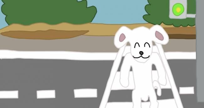 犬が交差点を歩いている所を描きました。オリジナル作品です。
