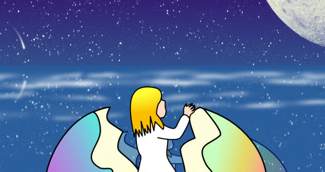 無限の宇宙と幻想的な海が広がるその場所で彼女の旅が今、始まろうとしている。