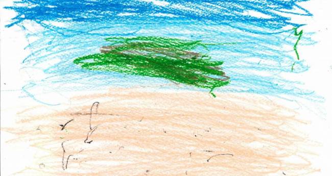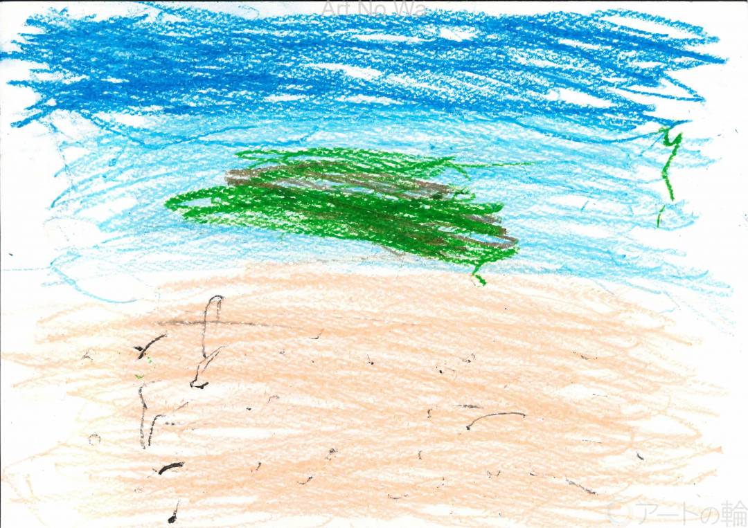 奄美大島の海の絵を描きました。砂浜を本物のように描いてみました。