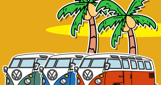 同じ「車」と名のつくものでも私は電動車椅子ですが、もし運転するのならワーゲンバスに乗ってみたい! そんな思いから描いてみました。
