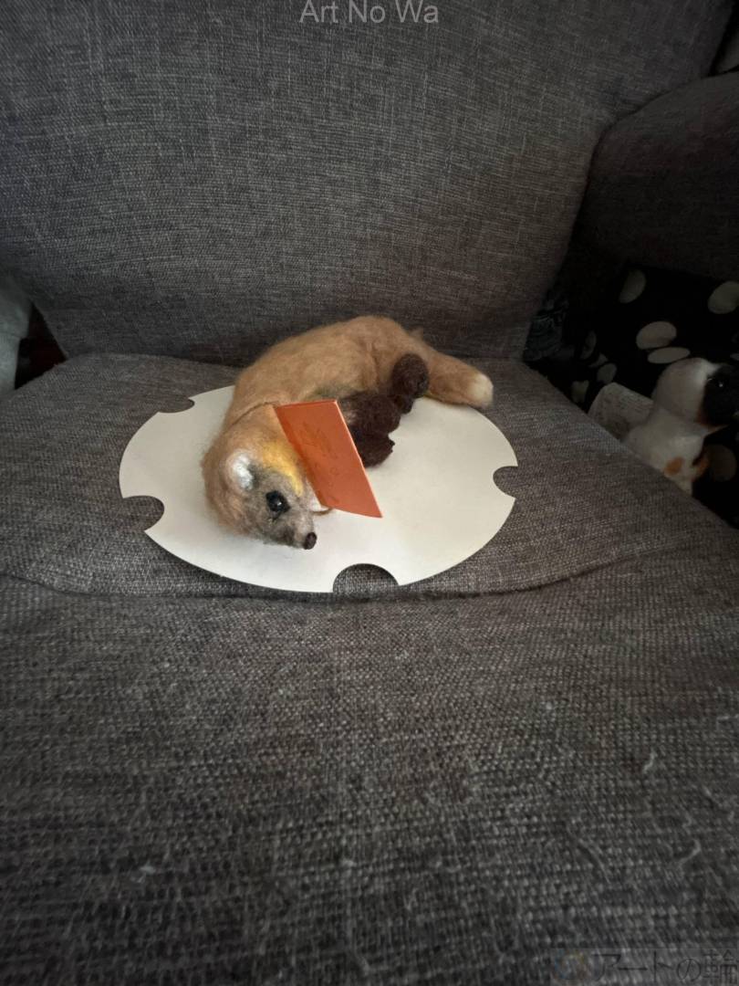 羊毛フェルトで丸くなっている姿のホンドテンを作りました。