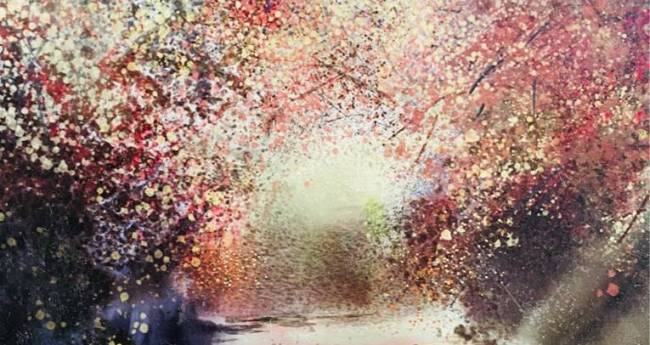 屋外,公園,赤,黄色,水色,植物,風景,明るい,2D
