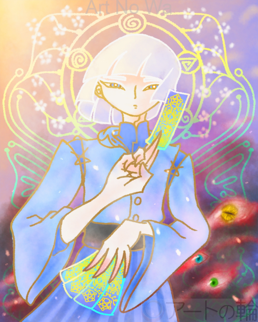 20XX年、世界各地に謎の黒い霧「邪気体」が出現。 触れたものを化け物にさせるその霧のせいで殆どの国家は崩壊した。 人類滅亡を救ったのは、現代科学ではなく「陰陽道」だった。 滅亡を防いでから数十年が経った。 平和を取り戻しつつあるアジア大陸のある地方。「現代陰陽道」を学ぶ主人公が、ひょんなことから出会った容姿端麗、頭脳明晰な天才、しかし自作回路護符づくりにしか目が向かない変人学生、青天目 晴(なばため はる)(この絵の人です)に振り回されつつも、学院の事件や突如現れる化けものを鎮めてゆく。▼▼▼▼▼…というお話を妄想しながら描いた作品で御座います。未来の価値観からか、どこか中性的な雰囲気を持っております。(ibisPaintXを使用)