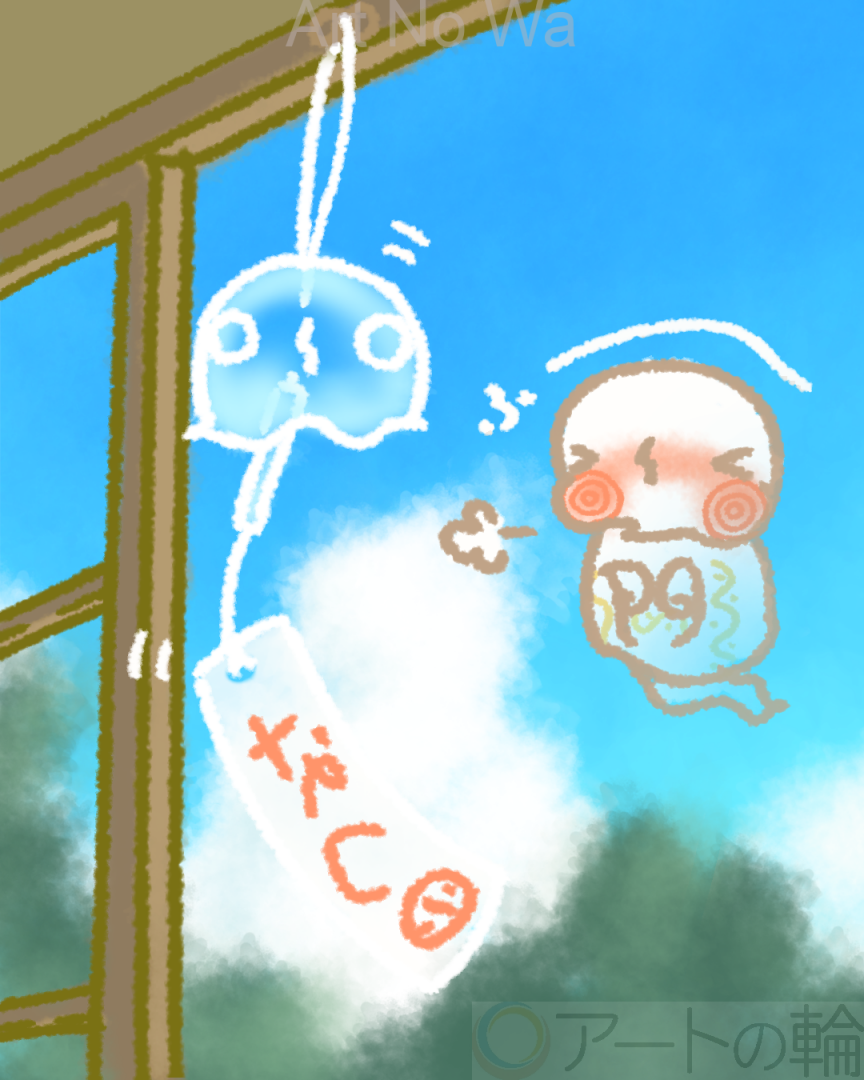 6がつから とてもとても あついひがつづいていますが、おげんきですか?(投稿当時 2024年7月頃) ワラワゴさまが、どうやら ふうりんですずしくさせようとなされているようです。 ポルターガイストとふーふーこうげきにより いつもいじょうにがんばっておられ…ああワラワゴさまの ごようすが! どうやらつかれてしまいました。むりは きんもつでございますよ、ワラワゴさま。 ▼▼▼▼▼ふうりんは ジメジメした てんきのおおい にほんならではの ぶんかでございます。 かぜが おとおりになったことをしめすことで、すずしくかんじさせるというものです。 また、ふうりんは まよけによくつかわれる「すず」のなかまなので、あくりょうをおいはらう こうかがあるそうです。 ジメジメはびょうきというケガレをよせつけてしまいます。 とくにたべものにカビがはえたら ようちゅうい。 みなさまも なにとぞ おきをつけて…(ibisPaintXを使用)