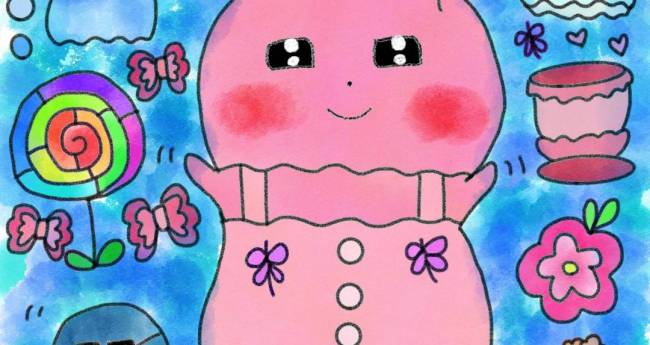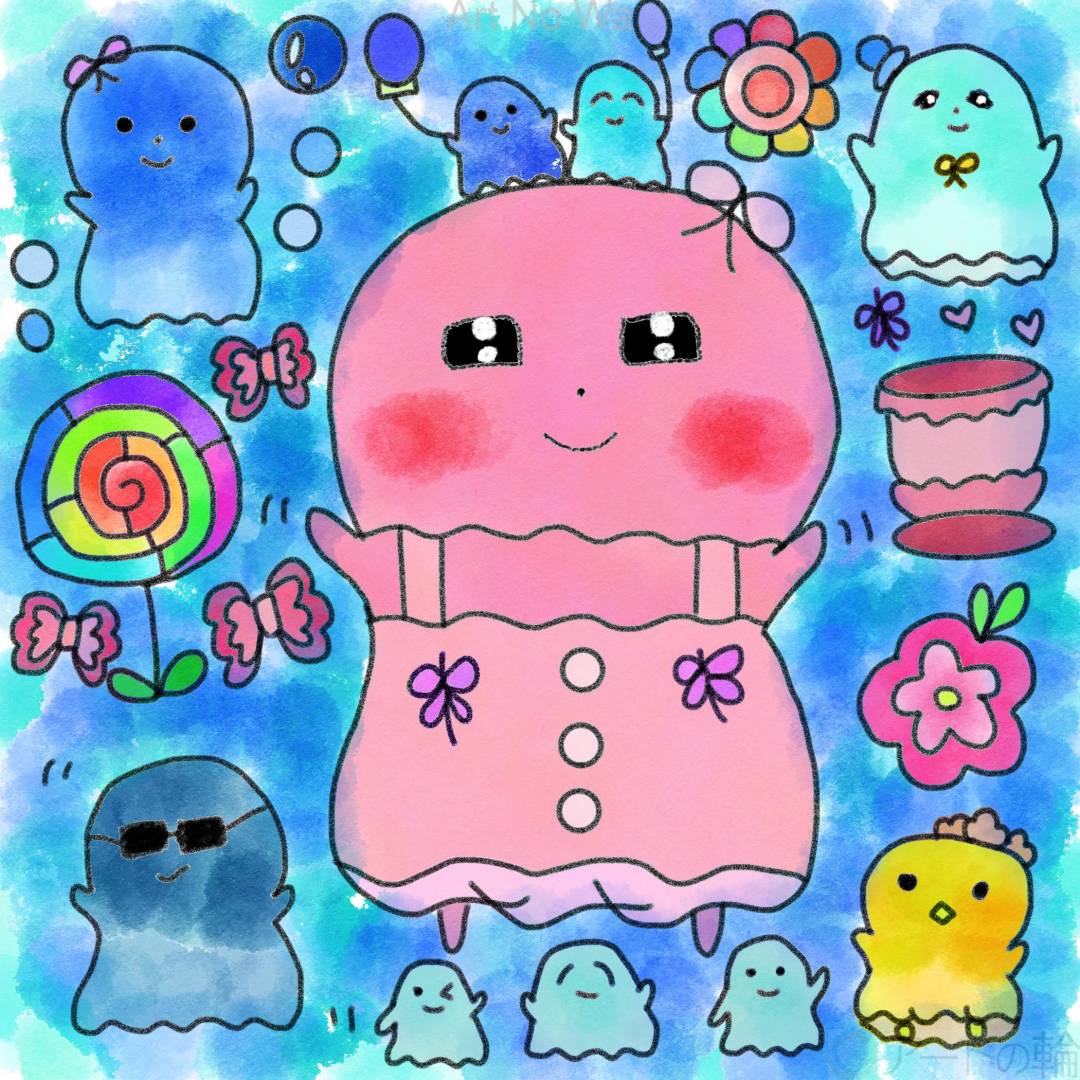 非現実,赤,オレンジ,黄色,緑,水色,青,紫,白,黒,静物,想像上の生き物,明るい,たのしい,かわいい,わくわく,どきどき