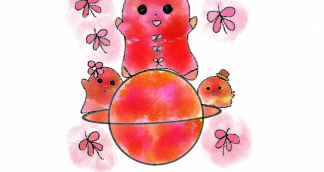非現実,赤,想像上の生き物,星,明るい,たのしい,かわいい,わくわく,どきどき